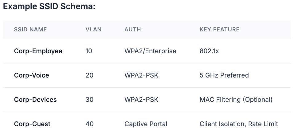3. Publish a v1.0 VLAN blueprint and SSID schema.